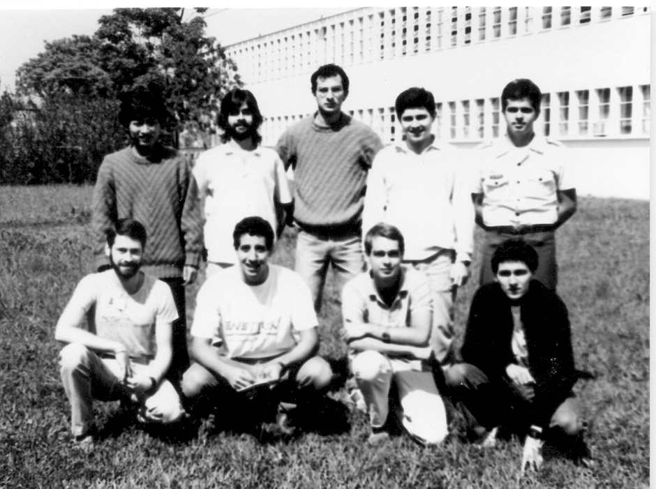 Turma 88, foto de 1987 no intervalo de aula predio da Infra: alto esquerda Carlos Mitsutani, Humberto Rocha, Cassiano Moura, Ernesto Malaghini, Adenauer Lima; Abaixo esquerda Gilberto Gamer, Rui Chamas, Fernando Papalardo (i.m.), Gustavo Penha.
