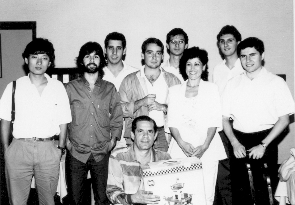 formatura T88 homenagem aos Profs CJ e Iria Vendrame - Esquerda: Carlos Mitsutani, Humberto Rocha, Rui Chamas, CJ, Fernando Papalardo (i.m.), Cassiano Moura, Iria Vendrame, Gustavo Penha, Ernesto Malaghini.